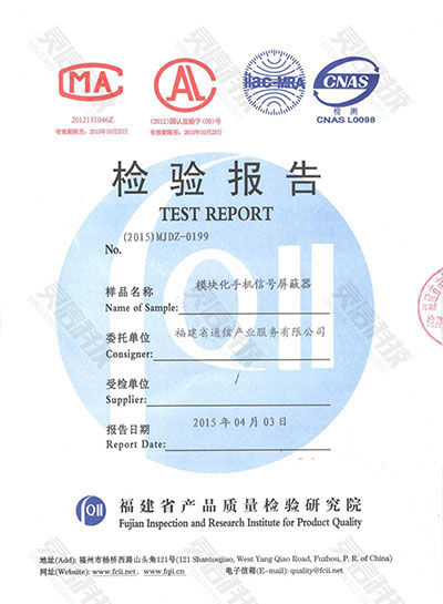 福建靈信信息科技有限公司研發(fā)、生產(chǎn)的模塊化手機(jī)信號屏蔽器,已取得福建省產(chǎn)品質(zhì)量檢驗(yàn)研究院出具的檢驗(yàn)報(bào)告,各項(xiàng)指標(biāo)合格。