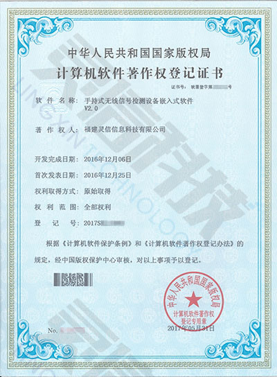 軟件名稱:手持式無線信號檢測設備嵌入式軟件V2.0